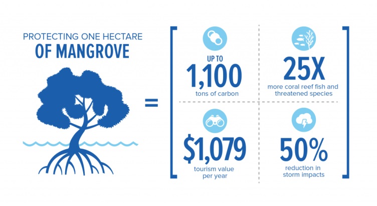 The International Union for Conservation of Nature has determined that, when compared to terrestrial forests, coastal ecosystems such as mangroves, tidal marshes, and seagrass meadows absorb more carbon per unit of area. According to a recent McKinsey & Co. blue carbon research, oceans have absorbed 40% of human-produced carbon emissions since 1850. However, habitat loss, pollution, and overfishing are eroding oceans' potential to mitigate climate change.[2]